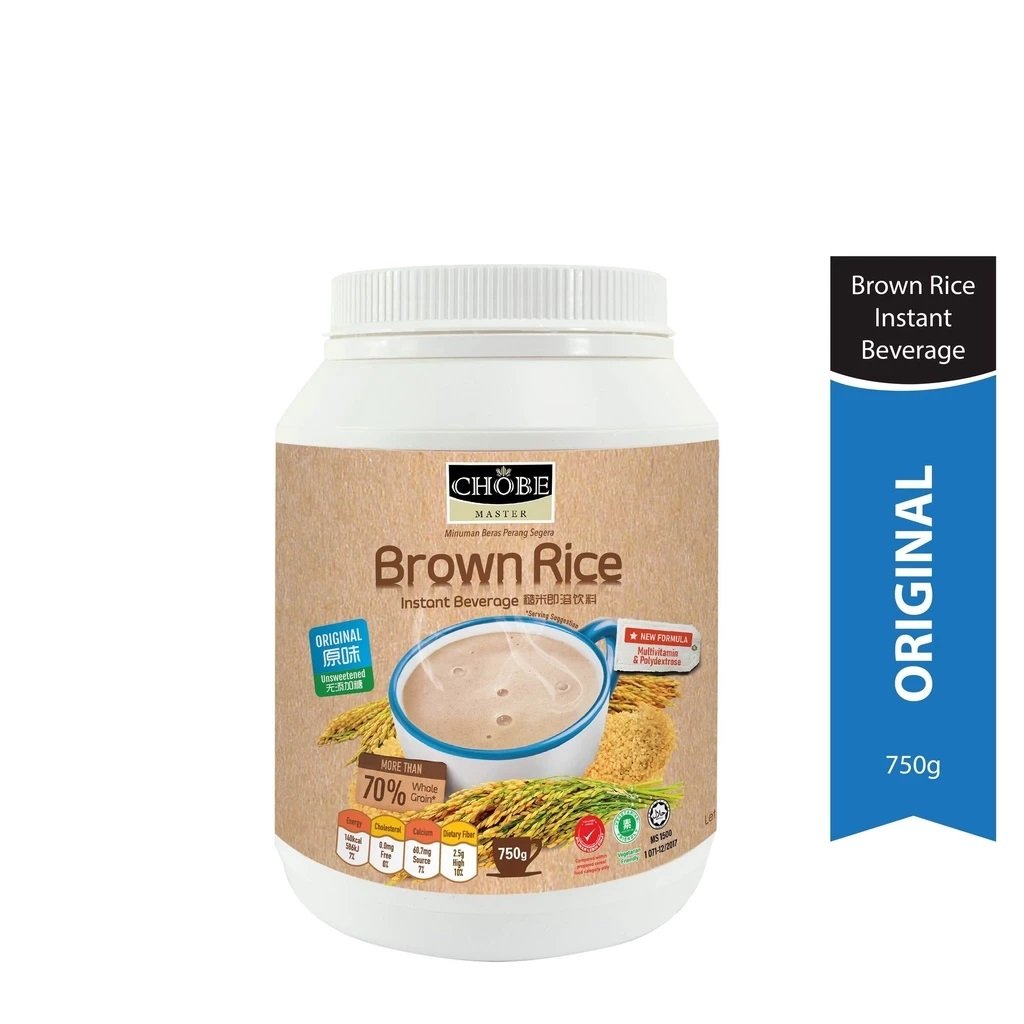 CHOBE MASTER INSTANT BROWN RICE DRINK (ORIGINAL) NO SUGAR ADDED WHAT IS CHOBE MASTER INSTANT BROWN RICE DRINK (ORIGINAL) NO SUGAR ADDED? Chobe Master Instant Brown Rice Drink (Original) carries the original natural fragrance of brown rice. It is smooth in texture and creamy vanilla taste. Using whole brown rice grains, the germ and bran of brown rice (more than 70% whole grain per serving) provide great sources of dietary fiber and Multivitamin. Nowadays, most of the population in Malaysia will consume more white rice than brown rice, and an estimated around 6% out of 31.95mil Malaysian (2019) drink soft drinks several times daily. WHAT WILL HAPPEN TO YOU? ✅ Risk Of Diabetes ✅ Risk Of Heart Health ✅ Risk Of High Blood ✅ Risk Of High Cholesterol ✅ Digestive Problem ✅ Risk Of High Glucose ✅ Obesity WHAT ARE THE BENEFITS OF CONSUMING A CHOBE MASTER INSTANT BROWN RICE DRINK (ORIGINAL) NO SUGAR ADDED? 👉 Control Cholesterol Levels 👉 Boost Heart Health 👉 Improve Digestive Health 👉 Beneficial For Nervous System 👉 Boost Immune System WHO CAN DRINK CHOBE MASTER INSTANT BROWN RICE DRINK (ORIGINAL) NO SUGAR ADDED? ✅ Diabetes Patient ✅ Gout Patient ✅ Senior Citizen ✅ Kids (4 Years Old & Above) ✅ Pregnant / BreastFeeding Mom (need to take more water) PRODUCT FEATURES HIGHLIGHTS - Unsweetened / No sugar added - More than 70% whole grain - High in Vitamin B2, B3, B6 & C - Source of Calcium - High in Dietary Fiber - Zero Cholesterol & Trans Fat - No Preservatives - No Artificial Coloring INGREDIENTS Brown Rice, Brown Sugar, Multivitamin, Polydextrose (**No Sugar Added) WHY ADD POLYDEXTROSE? Prebiotics (soluble fiber) help promote the growth of good bacteria in our gut. It promotes regularity, reduces constipation, supports healthy blood glucose, and may assist with weight management. POLYDEXTROSE - A soluble fiber & healthful in prebiotic benefits. - Is bifidogenic (help to increase intestinal bifidobacteria & maintain good intestinalmicroflora. - Help promote regularity, as a result of its faecel bulking. - Supports healthy blood glucose levels by eliciting a lower blood glucose response. - Is ideal for reduced-calorie foods and may assist with weight management. - Heat, pH, and Shelf life stable over Inulin/ GOS / FOS. SERVING PREPARATION ✅ Add 2 scoop into a cup. ✅ Add about 180ml hot water (85˚C-90˚C). ✅ Stir well and serve.