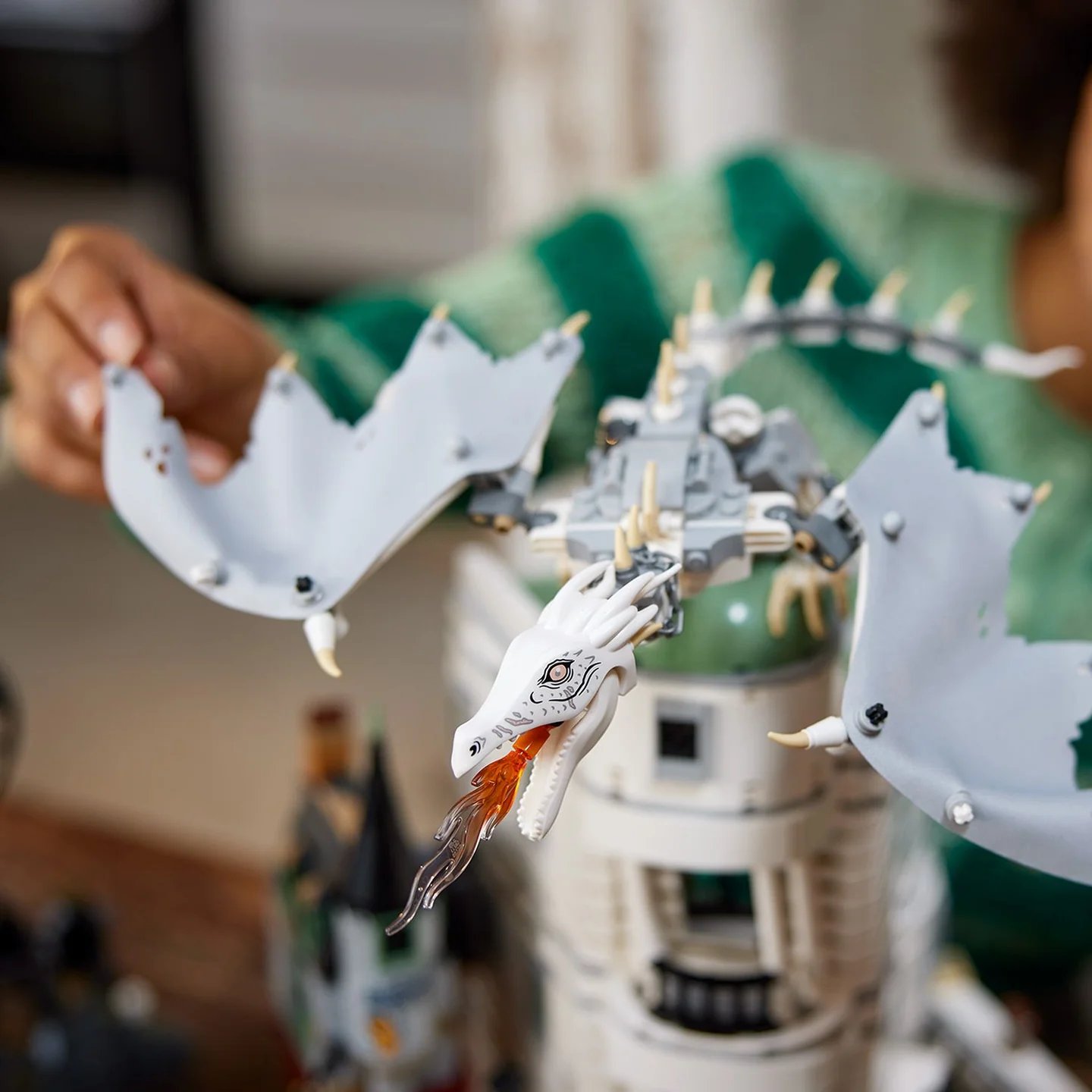 LEGO® Harry Potter™ Gringotts™ Wizarding Bank - Collectors Edition Be transported to the Wizarding World as you build this LEGO® Harry Potter™ Gringotts™ Bank – Collectors’ Edition (76417) set. Recreate the bank’s opulent foyer and mezzanine floor with a safe in the wall to store Hagrid’s secret letter. Construct a spiralling vault cart track with a mechanism that stops the cart at each of 3 underground vaults – including Bellatrix’s vault, which has a magical surprise inside! The set also includes a posable Ukrainian Ironbelly dragon figure and a buildable model of the Magical Menagerie shop. Build and display Find instructions in the box and on the LEGO Builder app to guide your spellbinding creative experience. Stack the vault, bank and dragon models and add the 13 included LEGO minifigures to complete a stunning centrepiece. Gift idea This LEGO Harry Potter set makes a special gift for any adult fan, and it can be connected to the 75978 Diagon Alley™ set (sold separately). LEGO® Harry Potter™ Collectors’ Edition set (76417) – Relive Harry Potter scenes at Gringotts™ Wizarding Bank as you build stackable models of the bank, 3 of its vaults and a posable Ukrainian Ironbelly dragon 13 LEGO® minifigures – 2 Harry Potter™ minifigures, Ron Weasley™, Bellatrix Lestrange /Hermione Granger™, Rubeus Hagrid™, Death Eater™, Bogrod, Griphook, Ricbert, 2 goblins and 2 guards Authentic features – A vault cart that glides down the spiraling track and stops at each vault, Bellatrix’s vault (which has a surprise inside), space for 3 minifigures on the dragon’s back, and more Lots to explore – Recreate the detailed foyer and mezzanine floor of bank and the Magical Menagerie shop next door Gift idea – Treat yourself or give this 4,803-piece buildable model to adult Harry Potter™ fans and collectors as a birthday gift, holiday present or special surprise Build and display – The Gringotts™ Bank section measures over 14.5 in. (36 cm) high, 12.5 in. (32 cm) wide and 10 in. (25 cm) deep. The 3 models combined measure over 29.5 in. (75 cm) high Build solo or as a creative group activity – Find step-by-step buildings instructions in the box and on the LEGO® Builder app Combines with other LEGO® Harry Potter™ sets (sold separately) – The Gringotts™ Wizarding Bank build connects to Diagon Alley™ (75978), which is sold separately Quality assurance – LEGO® bricks fuilfill stringent industry quality standards to ensure they are consistent, compatible and connect securely Safety first – LEGO® components are tested in almost every way imaginable to make sure they satisfy rigorous global safety standards A stunning Gringotts™ Bank display model Visit the Wizarding World with this building set, featuring Gringotts™ Bank, 3 bank vaults and the Magical Menagerie shop. Spark memories of magical Harry Potter™ scenes Immerse yourself in a spellbinding creative experience, capturing authentic details of an iconic Harry Potter™ location.
