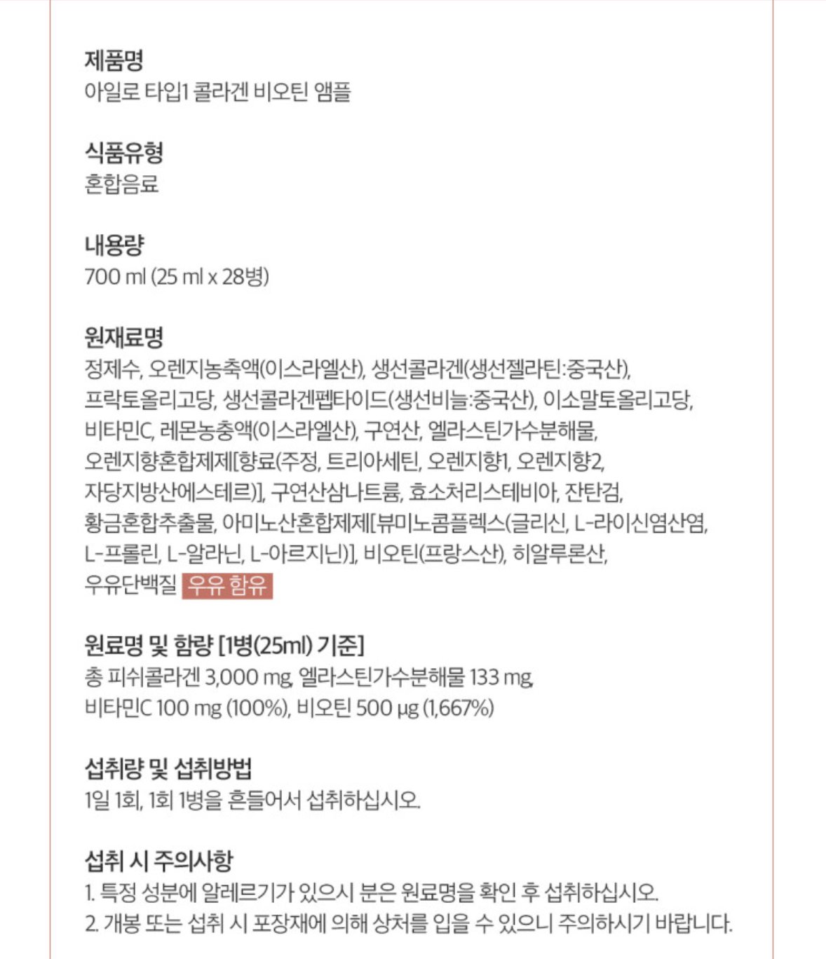 『🇰🇷人氣膠原蛋白💞』 ILO-TYPE 1 Collagen Biotin Ampoule 25ml x 28小樽 / 1盒
