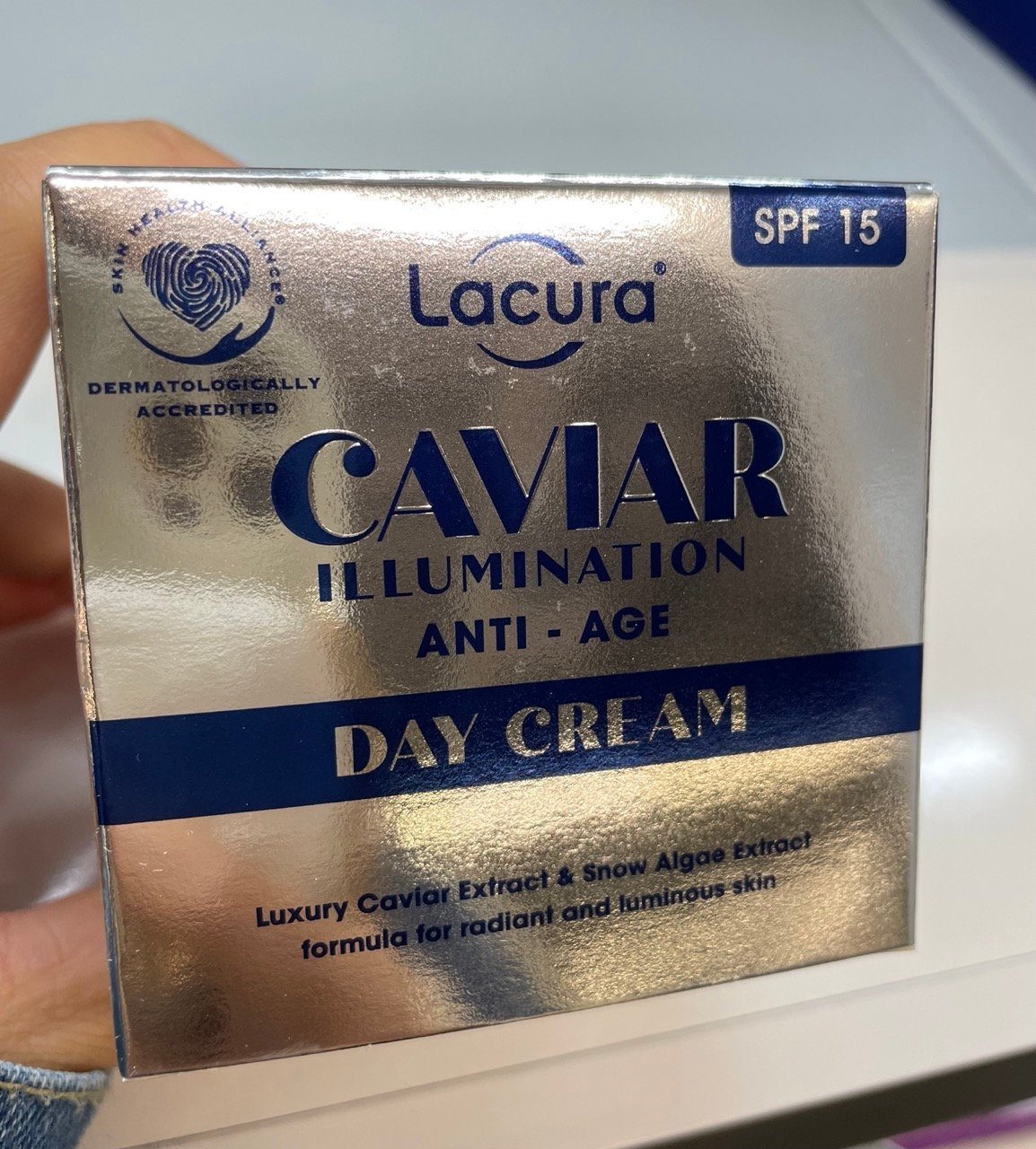 呢個品牌係英國好貼地 價錢同效果都好吸引~~~ 好多有朋友或者本地既媽媽都會用(包括我自己) 呢款係含有矜貴魚子精華 係英國都好HIT架,成日都瞬賣斷市 多本美容雜誌包括 Cosmopolitan, Woman & Home編輯全力推介, 榮獲多個美容產品獎項,包括年度最高CP值Anti-aging產品, 用家都表示用完效果媲美💃🏻貴婦級La Prairie。 🇩🇪德國製造🇩🇪 Lacura Caviar 矜貴魚子精華(日霜)(SPF15) / 晚霜 50ml ➡️魚子醬提取物,雪藻提取物和透明質酸 ➡️經皮膚科測試 ➡️SPF15 UVA / UVB防護(日霜) ➡️抗衰老配方 ➡️Lacura魚子醬亮膚霜是一款奢華而緊緻的護膚產品系列 歐洲VOGUE雜誌評:『2015年英國美妝盲測實驗結果,說明 LACURA 乳霜被評比跟瑞士品牌 La Prairie 效果一樣好。』