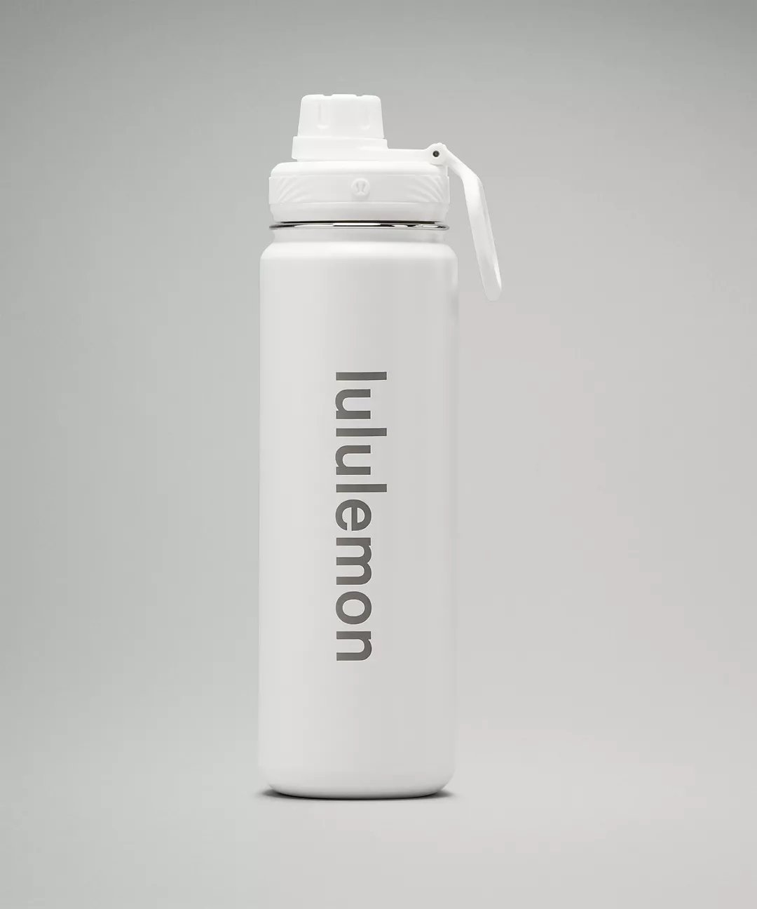 Lululemon 24oz / 710ml Back To Life Sport Water Bottle Color: White Body: 100% Steel; Top: 100% Polypropylene; Handle: 100% Silicone Lid is easy to open and leak-proof; Grab-handle; Vacuum insulated Dimensions: 26.4cm x 7.7cm (10.4" x 3.0") Volume: 24oz (710ml)