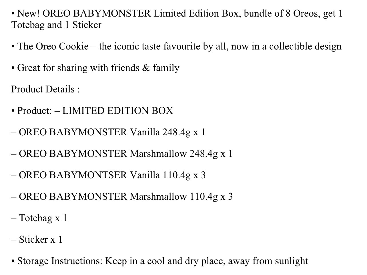 Oreo Babymonster Limited Edition Box Set Oreo Baby Monster Limited Edition Box x 1 set