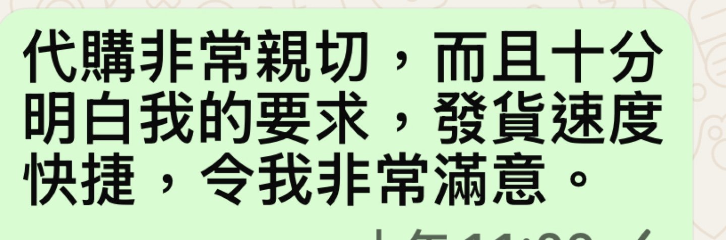 代購員服務好好,會pm update 代購進度。包裝安全穩陣,謝謝代購員的服務及細心。