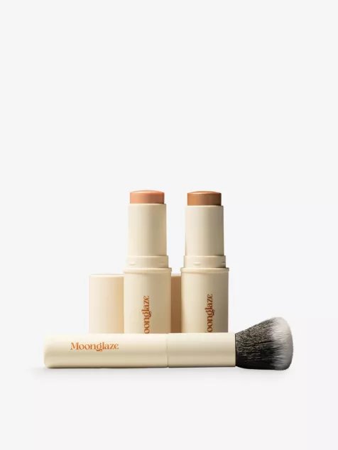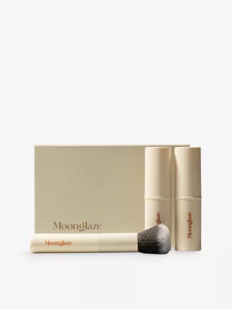 Product details Moonglaze make-up and brush set Includes: 2 x Glazed stick 7gg 1 x Multi-Use make-up brush 29g Benefits: Gilded, Glazed and our multi-use brush for the ultimate moonglaze experience Vegan Cruelty-free Made in South Korea