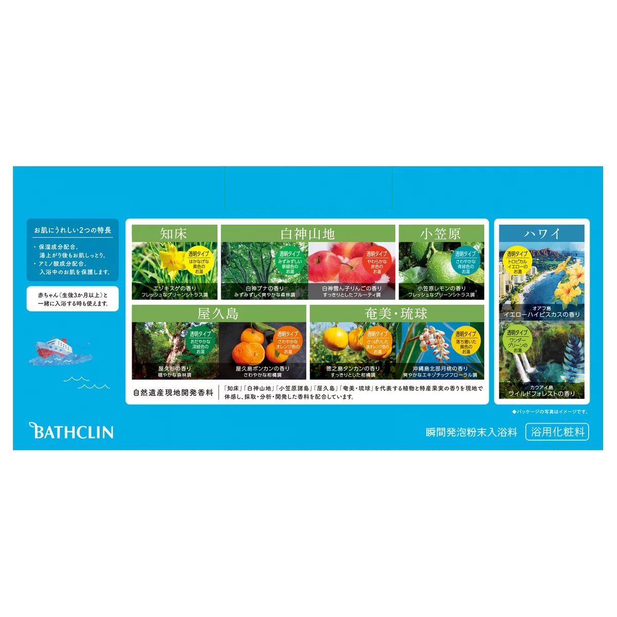入れた瞬間シュワシュワッと発泡するスプラッシュビーズ* により、浴室いっぱいに香りが広がります。 独自開発の「スプラッシュエア香法」を採用。 * 発泡剤 アソート内容:小笠原レモンの香り、屋久杉の香り、屋久島ポンカンの香り、エゾキスゲの香り、白神ブナの香り、白神雪ん子りんごの香り、徳之島タンカンの香り、沖縄県北部月桃の香り、イエローハイビスカスの香り、ワイルドフォレストの香り 分包30g×48包 1回1包30g 10種類48包入り 日本製