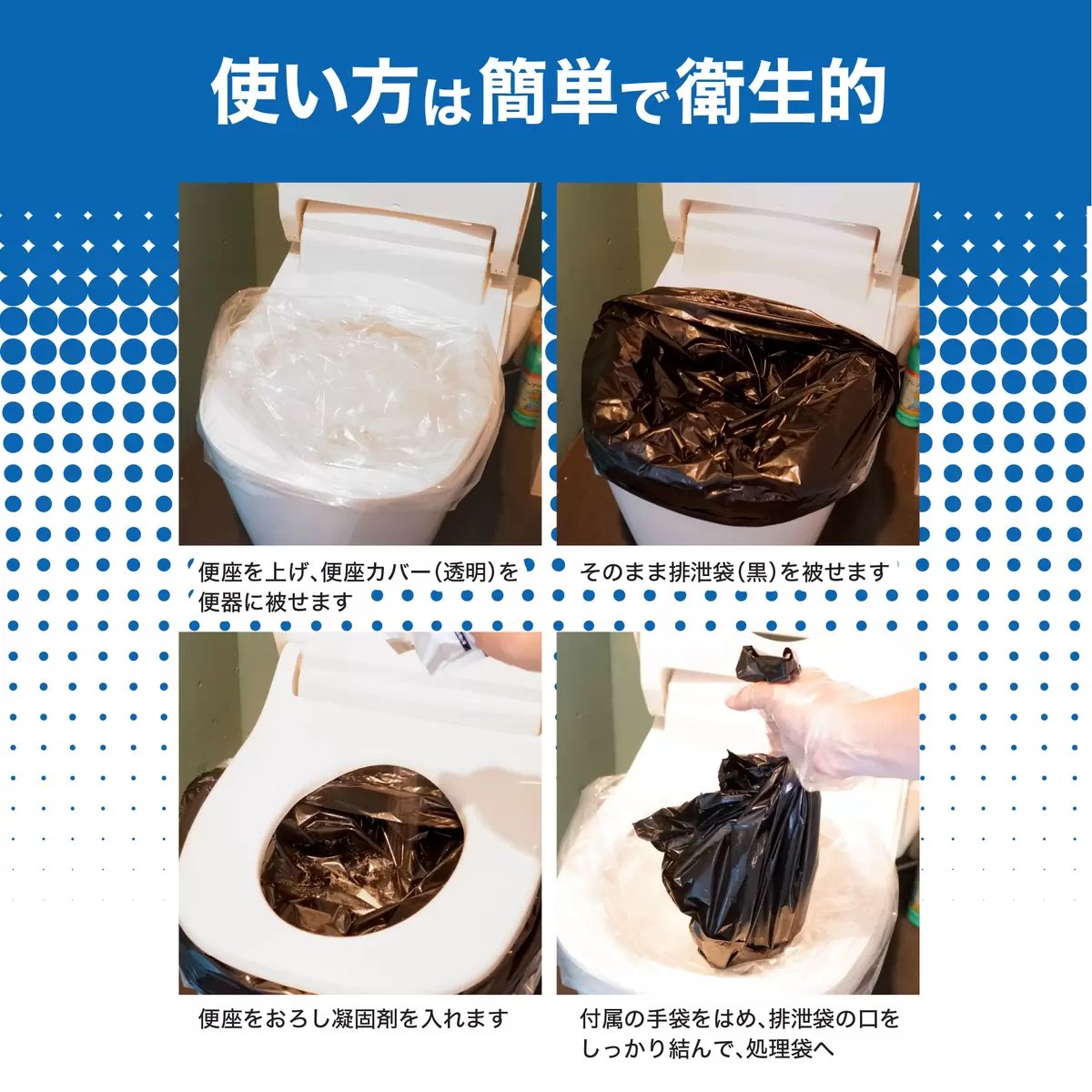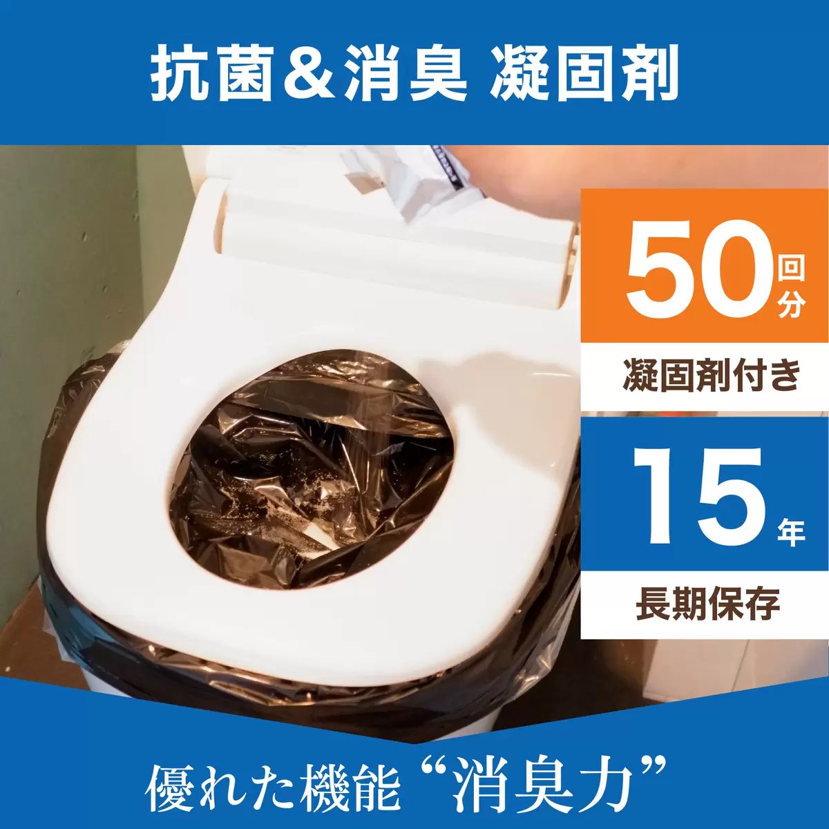這將解決災害時停水、停電時護理等的廁所問題! 方便、緊湊的馬桶,專為安全和易用而設計! 附有凝固劑,可使用 50 次,可保存 15 年。 抑制難聞氣味,除臭效果高達 99.5% 以上! 卓越的“抗菌力”,治療後抑制細菌生長! 無需組裝!使用方便且衛生。 高性能,具有出色的凝固性,約 20 秒即可硬化。 即使拉扯也不會輕易撕裂的排泄袋。 緊湊的設計,您可以在需要時隨身攜帶。