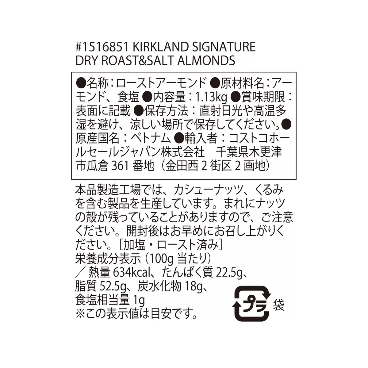 Costco - Kirkland 招牌乾烤杏仁 1.13kg
