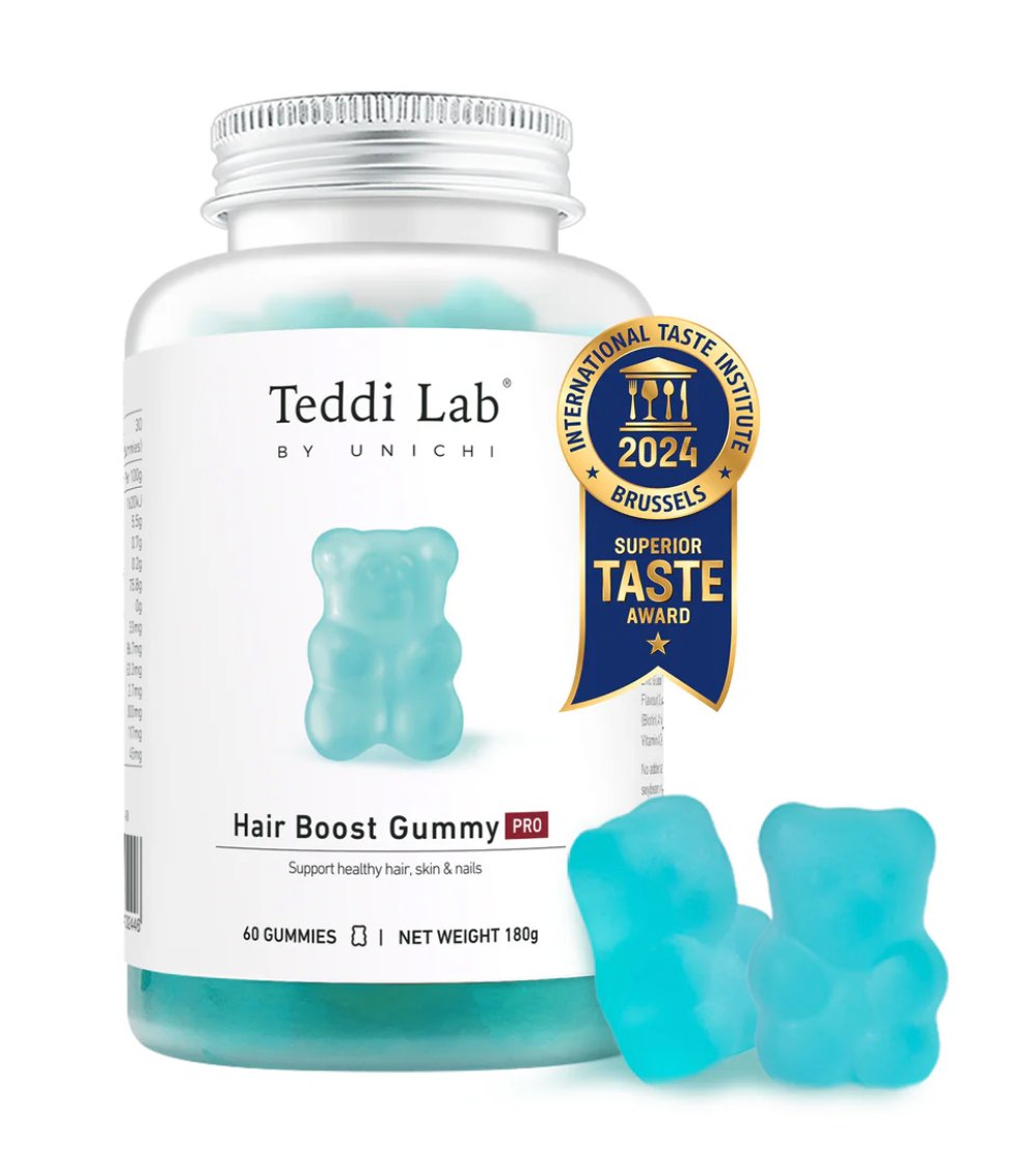 These specially formulated hair gummies are packed with Silicassense™, formulated together with Zinc, Biotin, Pantothenic Acid (Vitamin B5), Vitamin B6, Vitamin A, C, E to support hair growth and vitality. Each bear-shaped and delicious hair-chewable vitamin has great sea salt and green grape flavor, working together to strengthen hair strands, promote scalp health, and enhance overall hair thickness. Unichi Hair Boost Gummy Pro is the Australian PRO version increases the amount of the 7 strong ingredients from the original global version, and adds 2 new ingredients - the exclusive hair and skin care Silicassense™ and vitamin B6. It fully upgrades the formula to strengthen hair, make hair thicker, and reduce hair loss. Crafted with excellence of essential vitamins for hair growth and thickness, these delicious hair gummies support not only faster hair growth but also improve hair strength and thickness. Infused with powerful nutrients like biotin, zinc, and Vitamin B5, B6, these hair growth gummies nourish your scalp from within, promoting healthier, fuller hair. Gluten-Free, Non-GMO Zero Sugar, Low Fat 2024 Brussels Superior Taste Award - Great Tasting with Sea Salt & Green Grape Flavour Net Weight: 180g Not suitable for Children under 15 years of age.